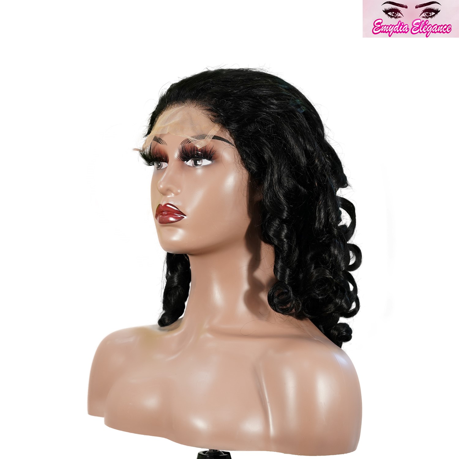 Emydia Elegance Natural Black Remy Hair 5×5 Lace Closure Bouncy Curls Human Hair Wig