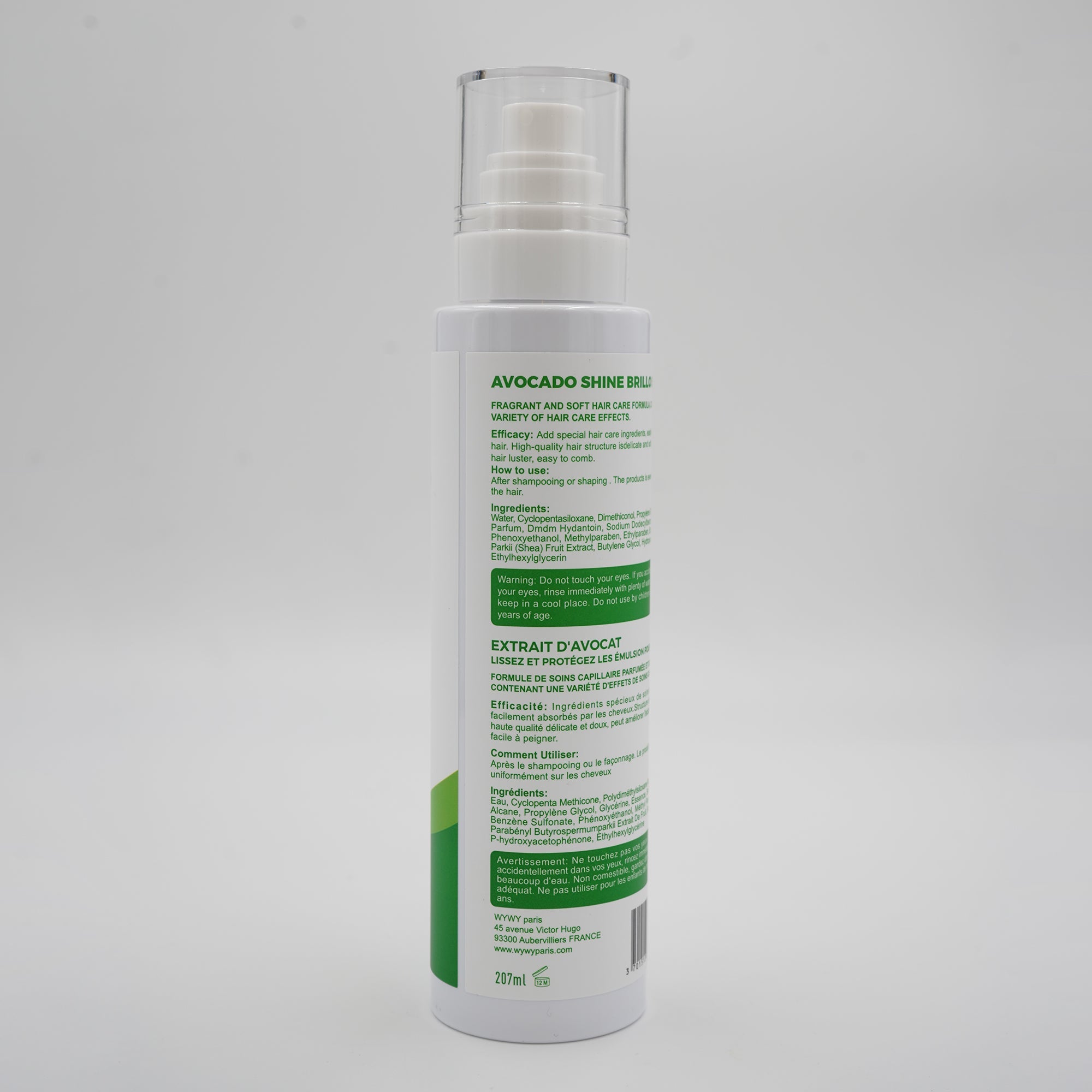 wywy avovado brillo spray is perfect for completing any look and leaves your hair radiant and silky. Add shine to your hair with just one touch!